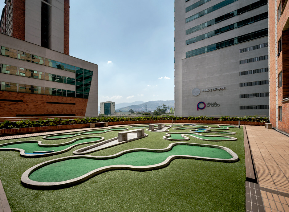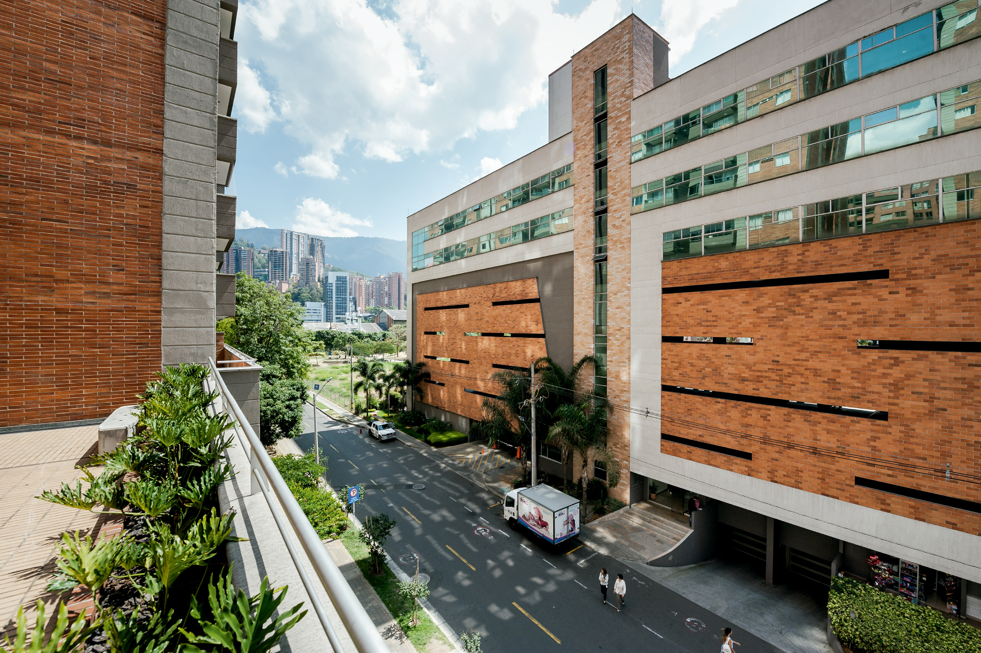 La torre 1, de 14.000 m2, aloja los servicios de Comedal, Comfama, Aduanimex, la Cámara de Comercio y otra serie de importantes entidades de la ciudad. Cuenta con un sótano y 7 pisos de parqueaderos, 8 pisos de oficinas, con terraza para empleados, 2 auditorios de reuniones y todas las comodidades y controles de seguridad necesarios para las oficinas. Las torres 2 y 3 constan de 2 modernas torres de 7 pisos de oficinas, 4 niveles de parqueaderos y un primer piso con locales comerciales y de servicios.