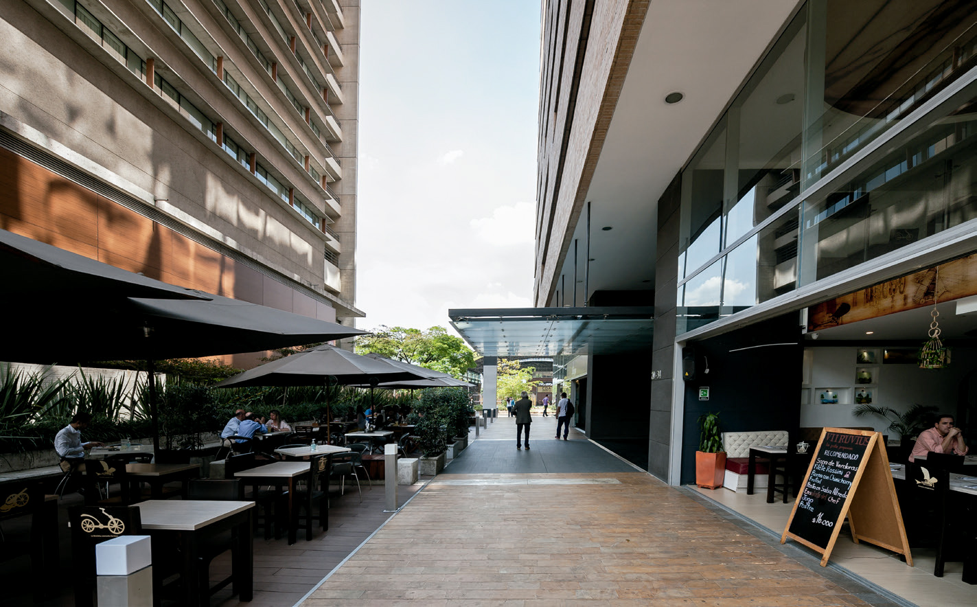 Otro aspecto fundamental que se ha venido planteando con entusiasmo consiste en la necesidad de integrar la vivienda con la vida pública de la ciudad. La tendencia actual es que los conjuntos residenciales dejen de ser unidades cerradas y se vinculen con lo que pasa a su alrededor. Un buen ejemplo de ese tipo de proyectos habitacionales fue el que Suramericana desarrolló cerca de la calle Colombia, que cuenta con edificaciones altas que albergan locales comerciales en la planta baja y alrededor de esos locales se crearon circulaciones peatonales muy enriquecedoras para el espacio y los ciudadanos. Espacios con esas condiciones generan vida de barrio donde los habitantes pueden acceder caminando a la oferta de comercio y servicio sin necesidad de utilizar el carro, es por eso por lo que estos sectores logran el precepto de una ciudad a una escala más humana.
