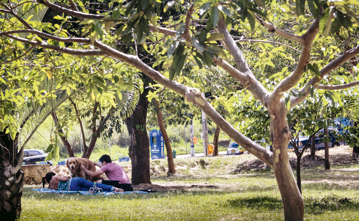 En las zonas verdes es frecuente ver a grupos de amigos o familias sentados en la manga sobre manteles, disfrutando en la tarde de un pícnic y una buena compañía. Muy cerca, niños de todas las edades corren y juegan, mientras que perros disfrutan de su paseo al aire libre. Y un poco más hacia al sur, jóvenes en bicicletas o skate, practican en la pista, haciendo parte del nuevo paisaje urbano.