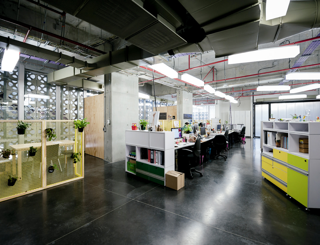 Aunque se diseñaron muchas fachadas, la conclusión fue aceptar que la del edificio original de Talleres Robledo tenía personalidad y por eso debía conservarse incluyendo su aviso. Dentro de su diseño hubo otro gran acierto, en vez de reforzar la estructura por el techo y perder la liviandad del edificio, se decidió engordar las columnas para que tuvieran una capacidad de soporte mayor, así estas adquirieron categoría y una proporción casi egipcia que las sacó del contexto inicial de edificio básico industrial. En la actualidad las columnas se ven como elementos de mucha fuerza y le dan al espacio mayor interés. Para la nueva edificación se renunció al ladrillo y se introdujo el concreto como un material más protagónico, también se utilizó mucha de la madera existente del techo que se protegió con teja acústica.