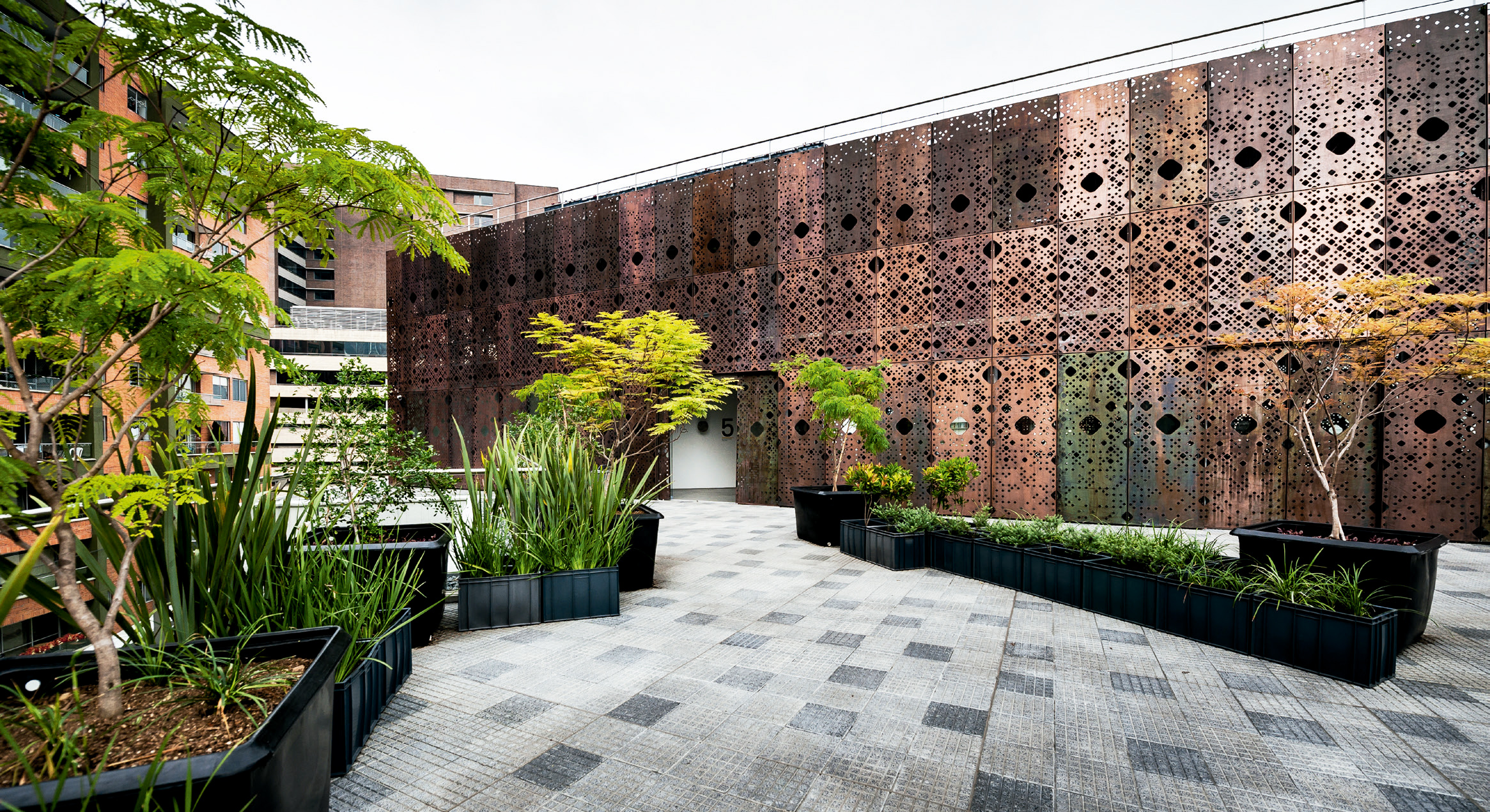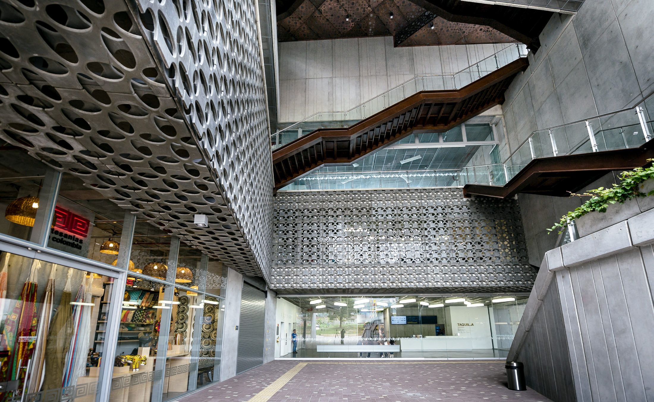 El reto arquitectónico era muy grande porque había que sumar nuevas salas sobre un espacio que ya había sido intervenido y renovado de una manera muy interesante por el Grupo Utopía. Además del concepto de las cajas, la alianza de los arquitectos de 51-1, de Perú y Control G, de Colombia, tomaron otras decisiones acertadas, una de ellas fue conservar la propuesta del material de concreto como protagonista y seguirlo utilizando para complementar, mezclando calados que crearon nuevas perspectivas y separaciones. Así mismo, decidieron respetar la nave central de Talleres Robledo como la más importante para el edificio, por eso ninguna de las nuevas salas tuvo su dimensión, en resumen, en palabras de Viviana Peña: